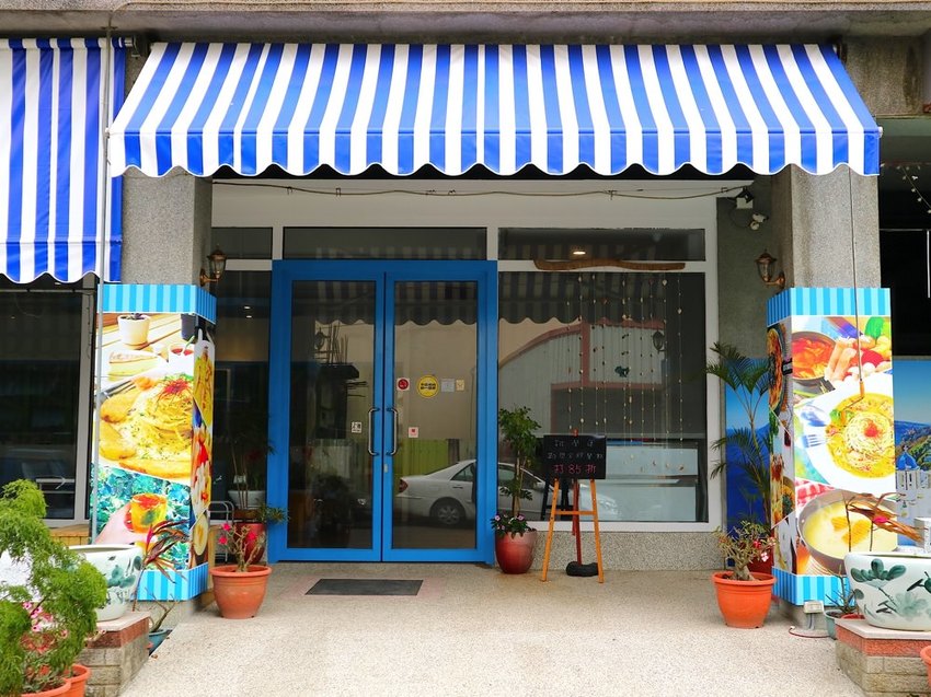 《努逗風味館》外觀藍白色系為主題,滿有希臘海洋風格,雖然位於新營巷弄內,倒也滿顯眼的!