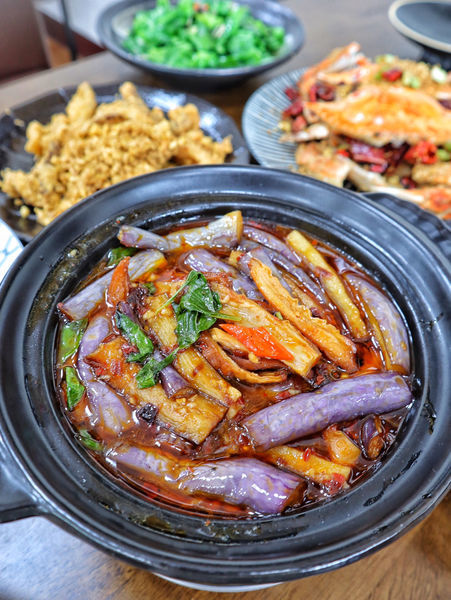 ▫️愛吃茄子的三姊、愛吃肥腸的我,一起在這道菜找到彼此。以砂鍋型式上菜,帶有辣味、鹹香下飯,肥腸作法講究先炸過,口感軟Q有嚼頭,光這一鍋就能扒光足足一整碗白飯。