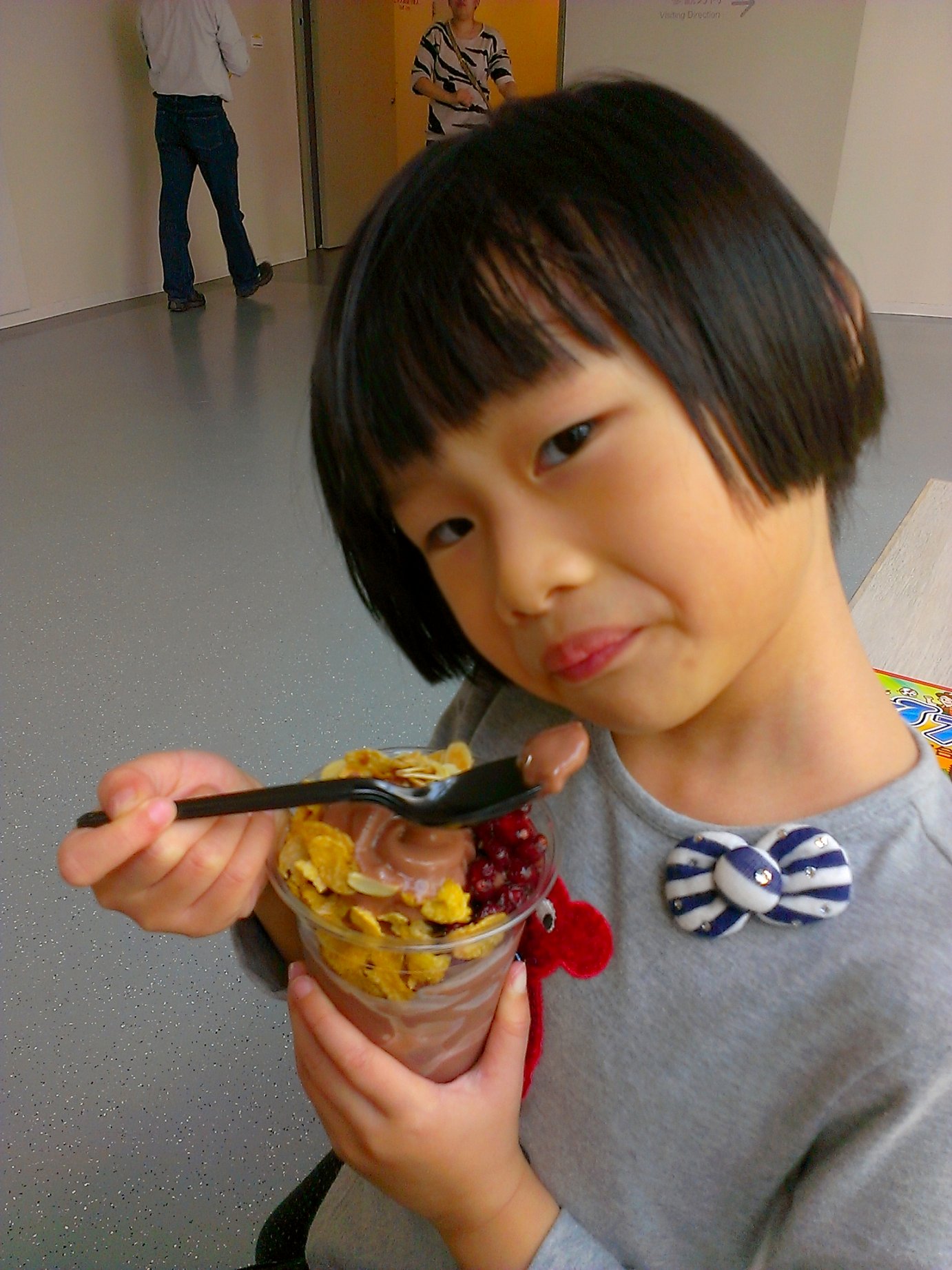 我一邊拿,妹妹就一邊等不及開始吃了...XD