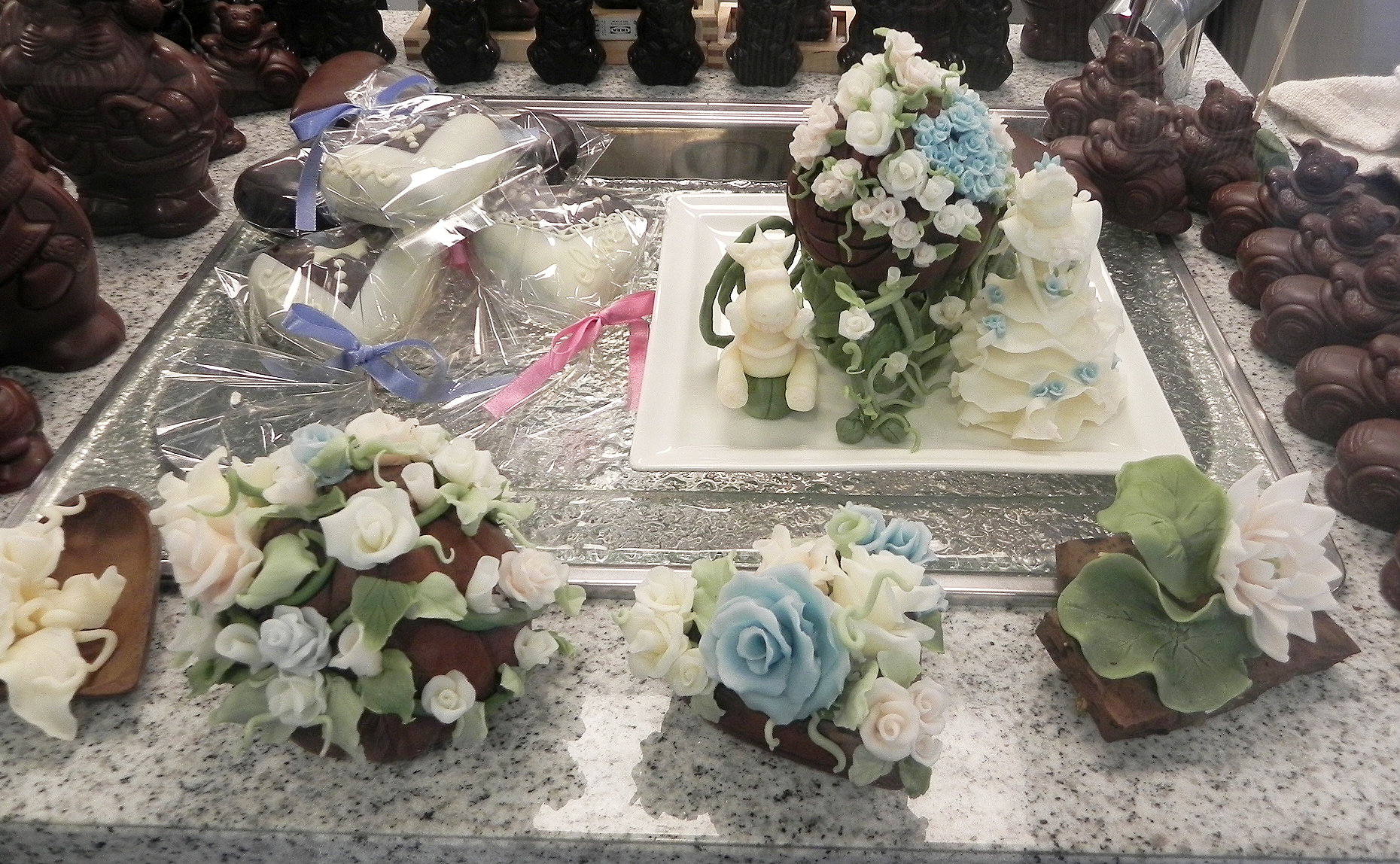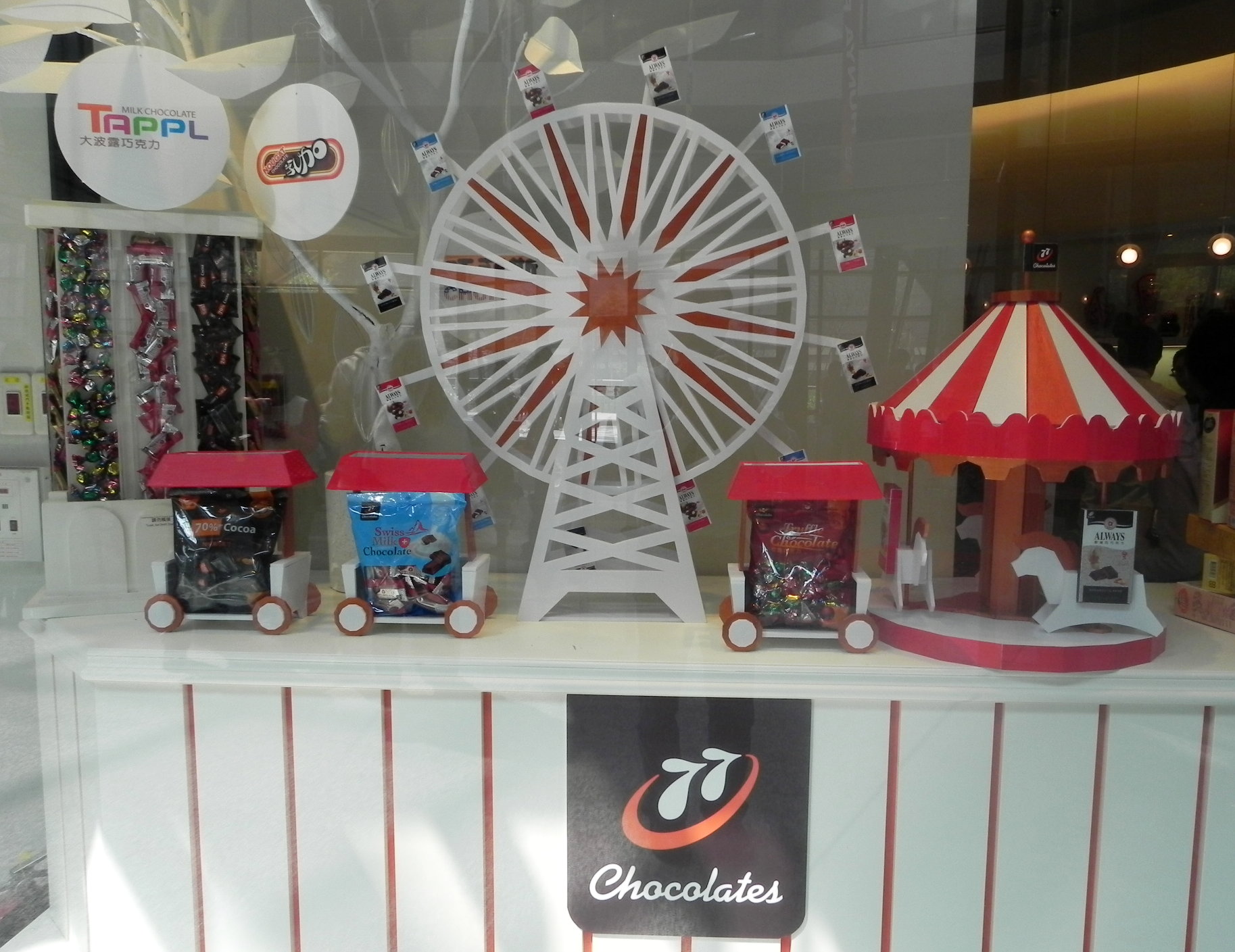 玻璃窗內擺滿了各種可愛又精緻的巧克力