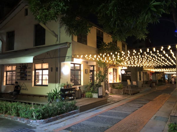 吃飽喝足後外面的燈都開了,