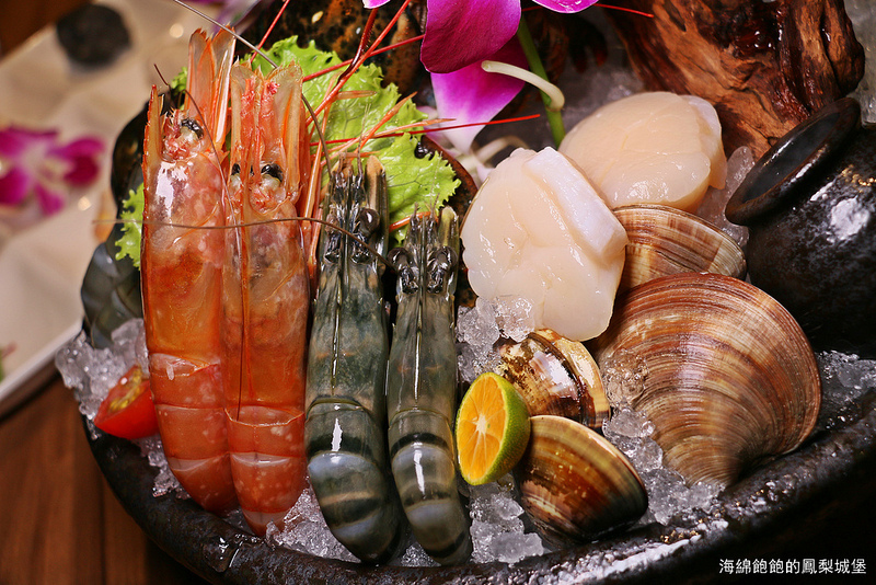 旁邊搭配天使紅蝦、草蝦、藍鑽蝦、干貝、牛奶貝