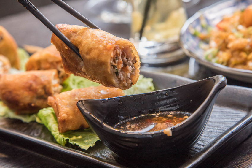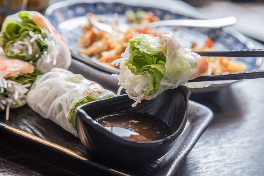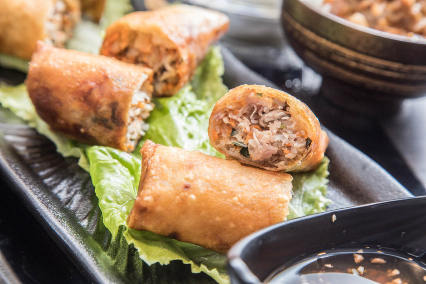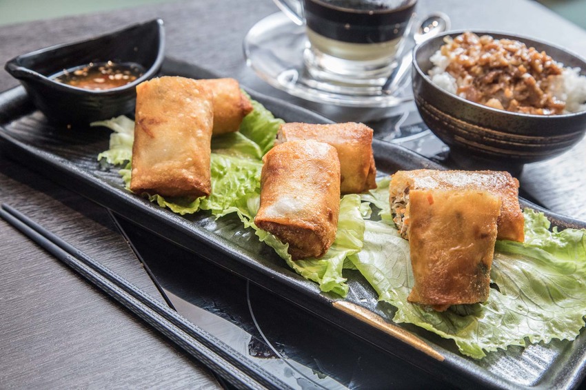 除了越式鍋物之外,粉享喫鍋也供應許多道地的越式風味小吃,越南炸春捲是不少人的最愛,越南炸春捲包裹著絞肉、香菇、芋頭、冬粉、紅蘿蔔、洋蔥等豐富餡料,外皮油炸至金黃酥脆,內餡相當軟Q且口感多層次,加上酥炸的春捲皮吃起來口感豐富,沾上魚露醬汁香氣更足,超好吃!
