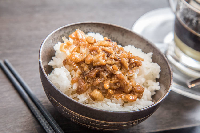 上菜前先來碗滷肉飯吧!滷肉飯鹹香夠味,米飯是使用台梗9號米,光吃飯都划算!