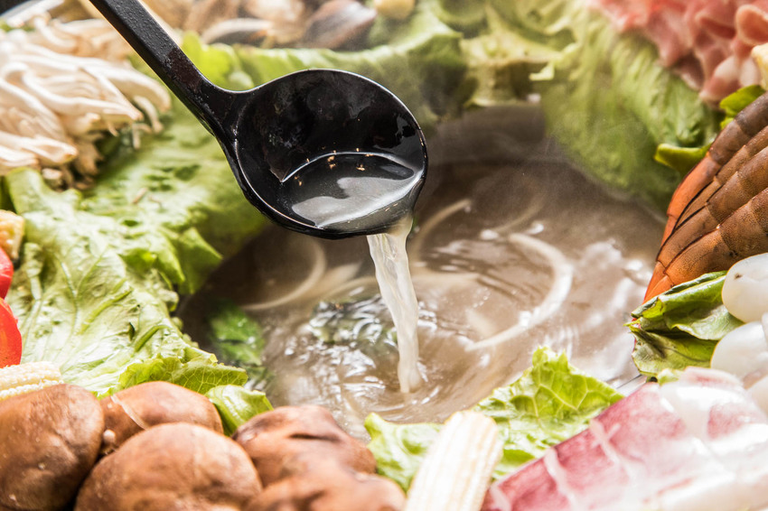 我們選擇的湯底是越式牛肉湯底,湯底是加入牛大骨、牛肉、洋蔥、紅蘿蔔等蔬菜熬製而成的澄清湯,調味是以肉桂、草果、丁香、八角、白胡椒粒等獨門香料,湯底喝起來濃醇中帶有層次豐富的絕妙香氣,跟任何食材都是百搭!