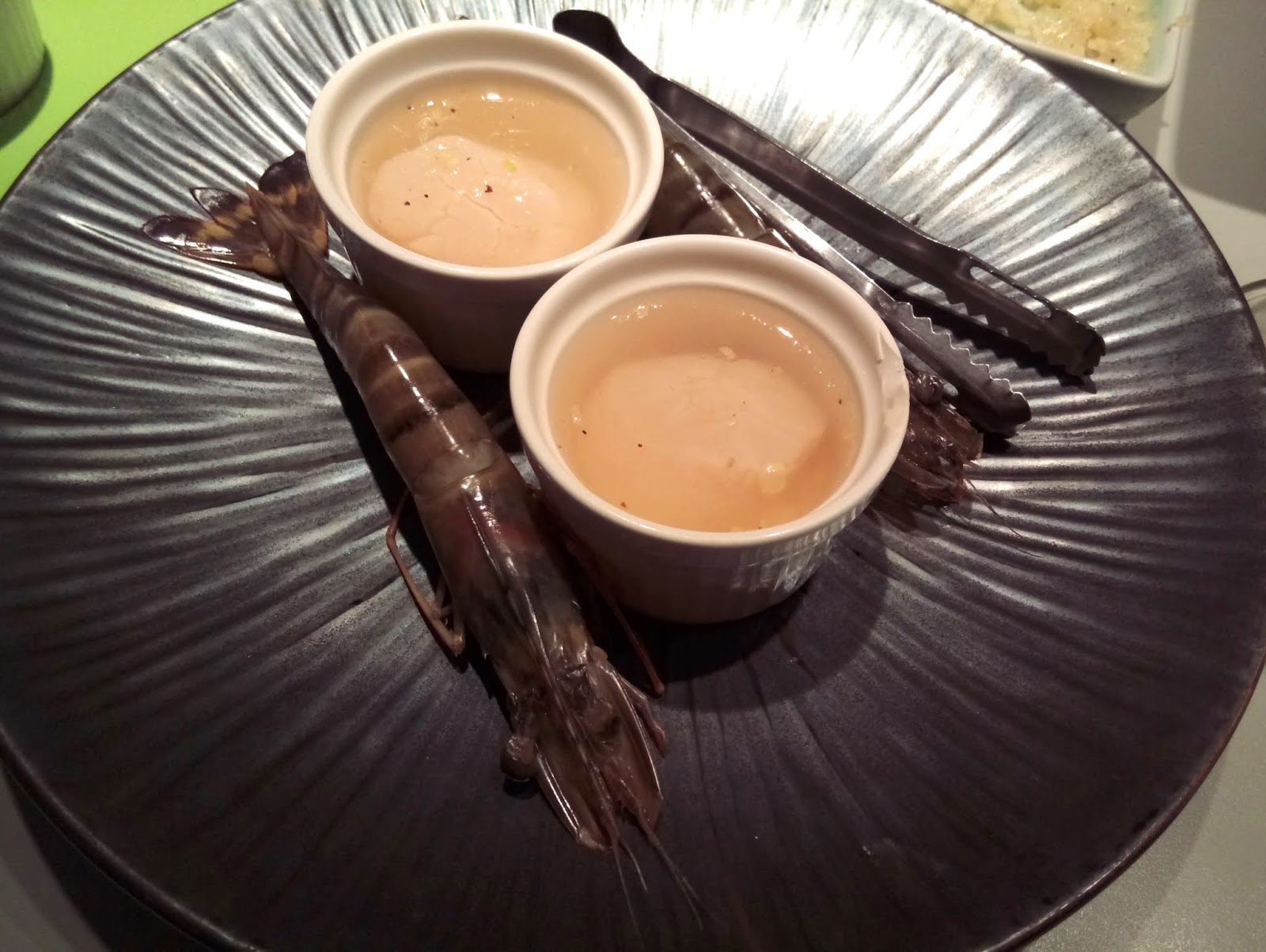 這是套餐中的海鮮拼盤,草蝦及干貝各兩個,干貝及蝦肉都很鮮很有彈性喔。