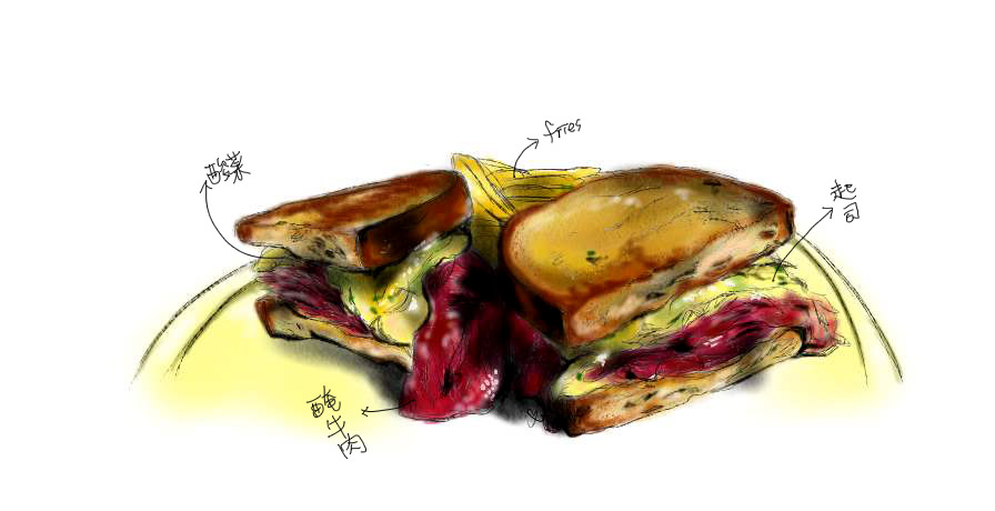 香烤牛肉餅早餐$360(附麵包/紅茶或咖啡)