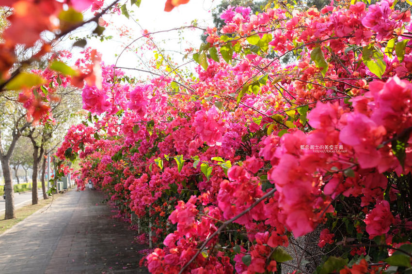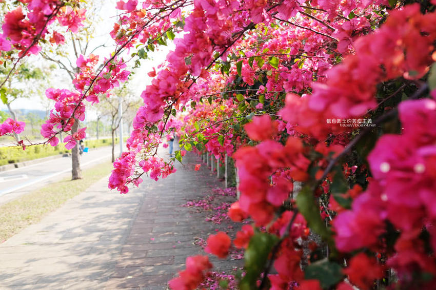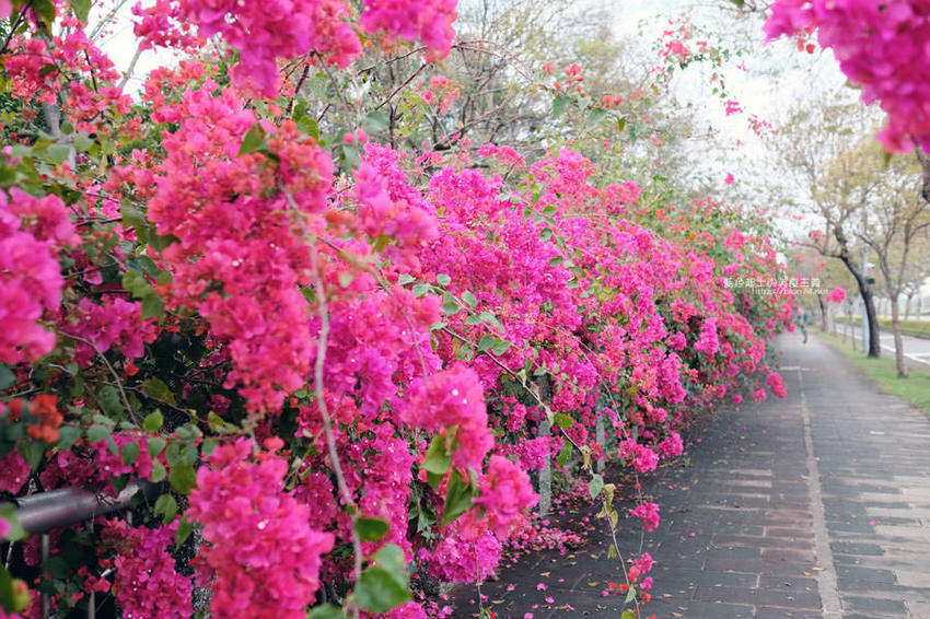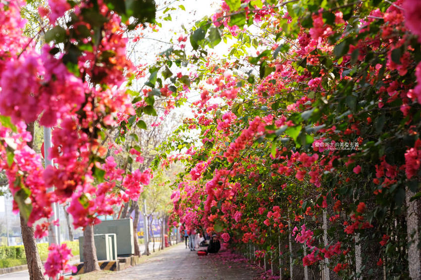 中科台中園區東大路上長達300公尺的九重葛花牆,近期成為打卡聖地,感受春天百花齊放的生命力;中科管理局為了便利民眾賞花,宣導交通資訊如下: