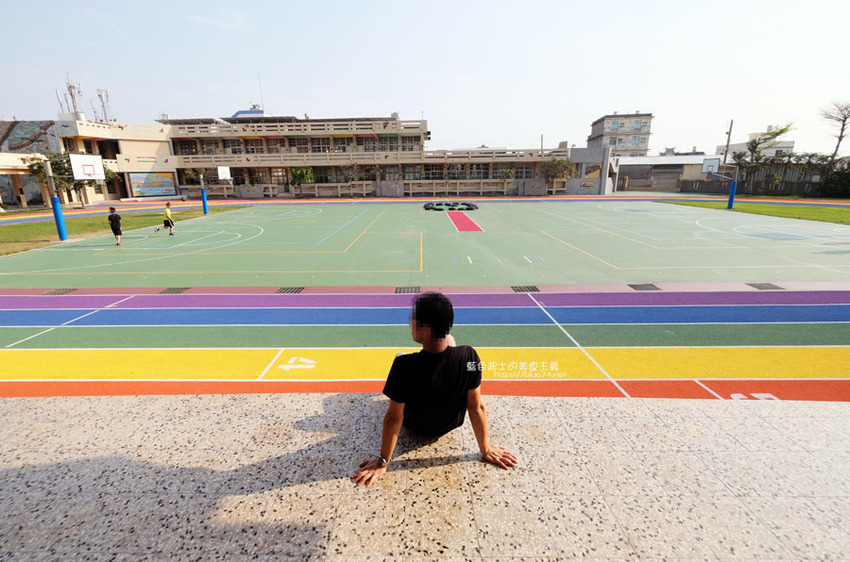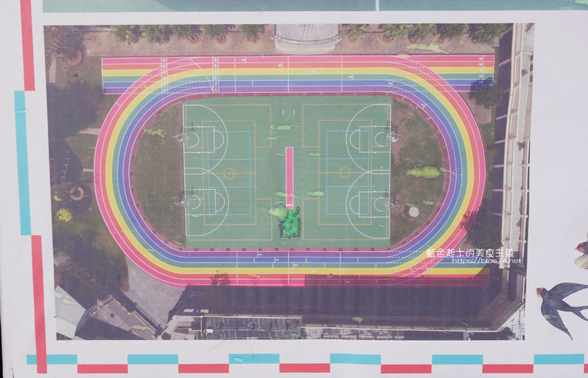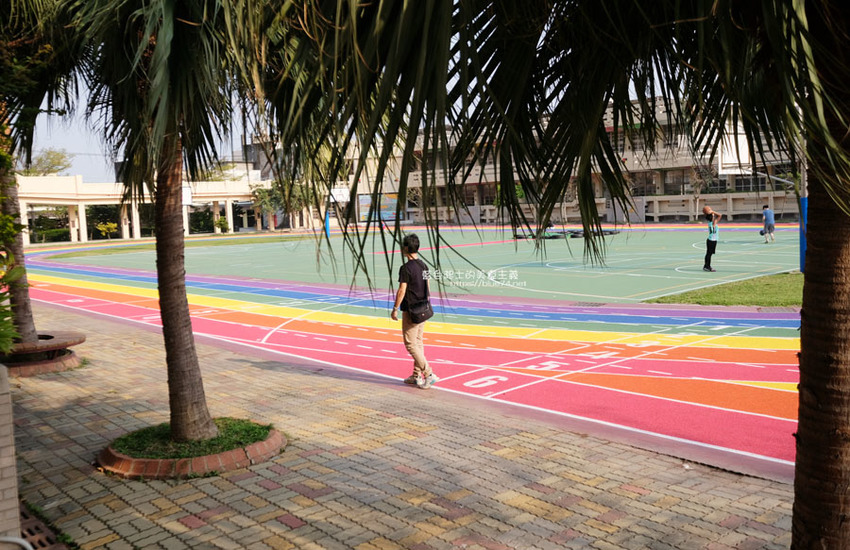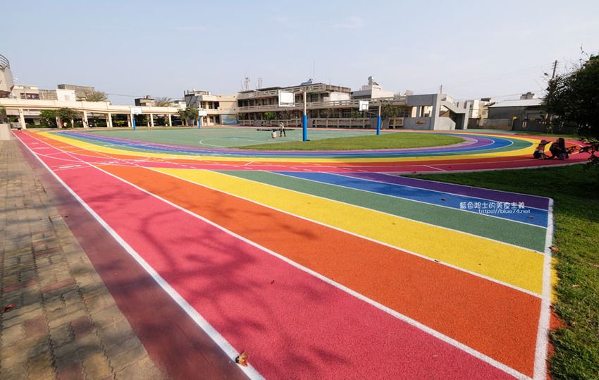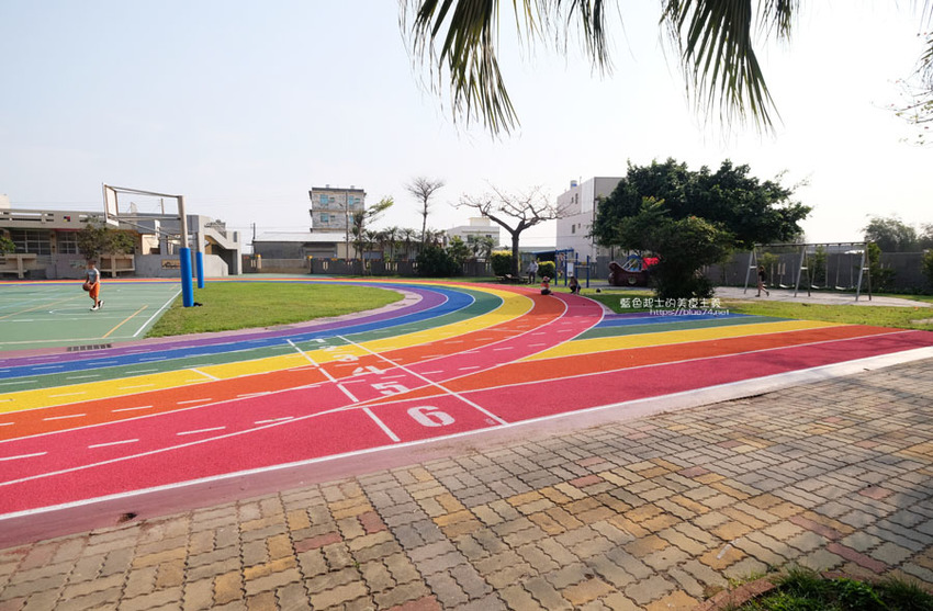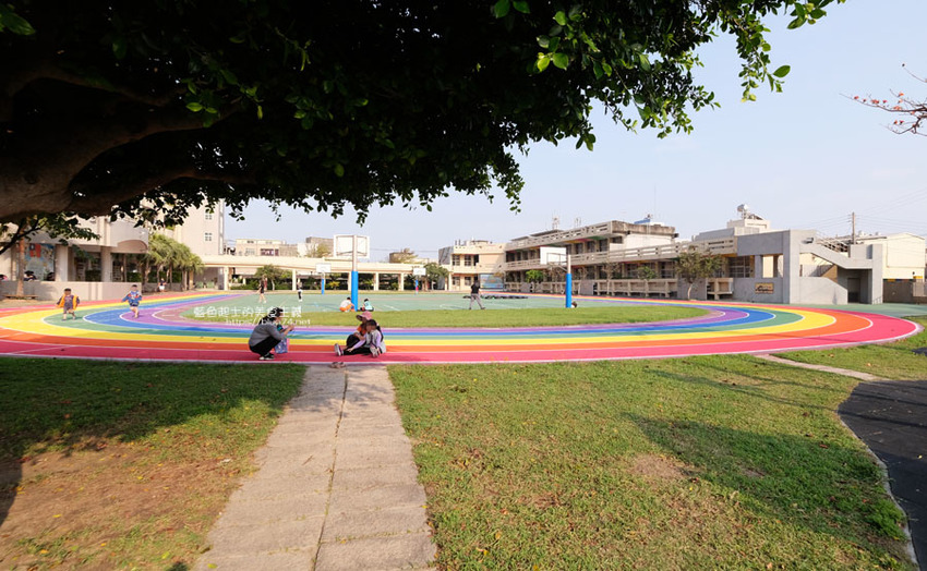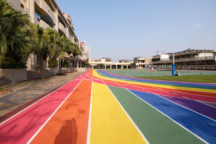 高美國小百歲囉,歷史悠久的學校,在校慶這天,操場繽紛、亮眼的彩虹跑道熱鬧的啟用