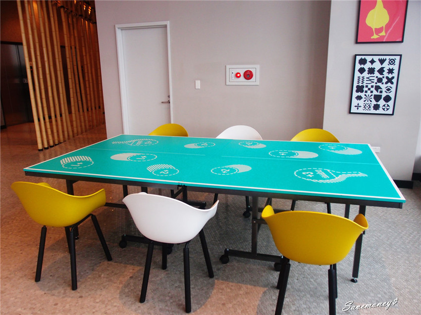 休閒區的桌球桌,連桌面和椅子的顏色搭配都設計感十足啊!