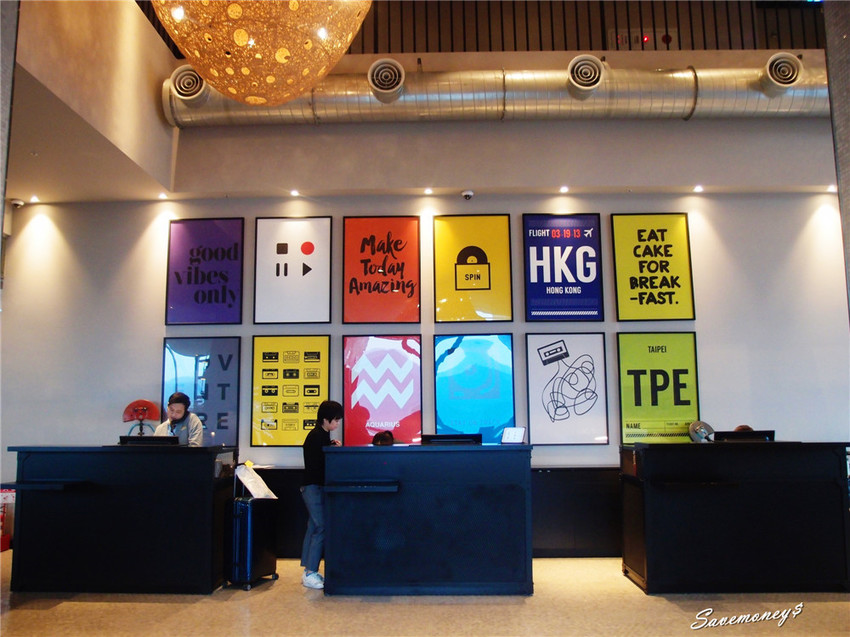 松山意舍酒店Check in的櫃台就在這裡,背後還有幾幅海報,看起來簡潔又時尚
