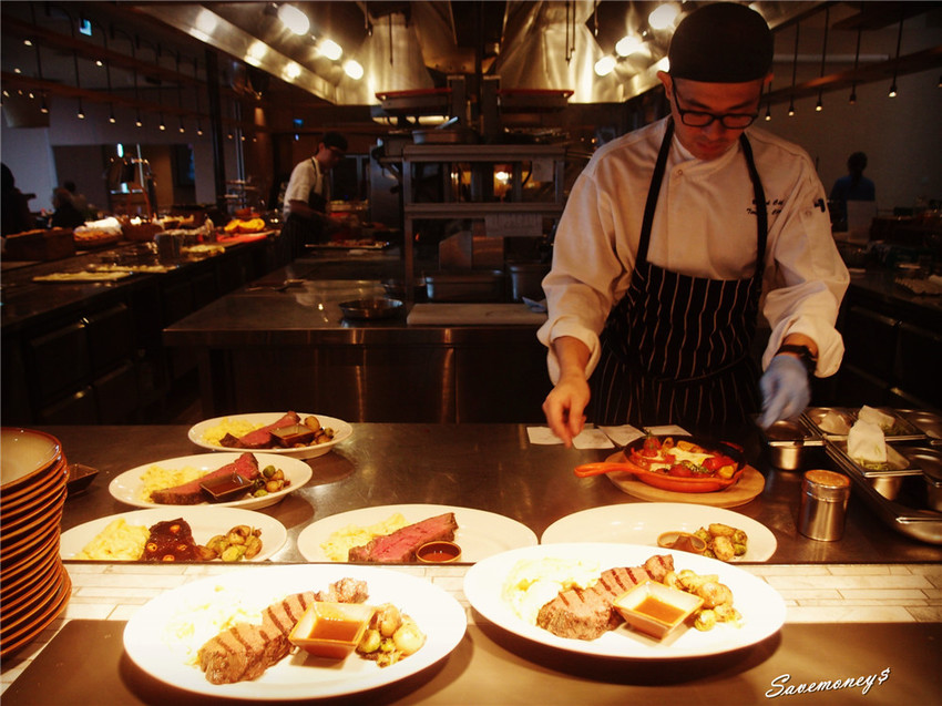 這邊是主餐供應區,Que原木燒烤餐廳的主廚正在做最後的裝飾排盤