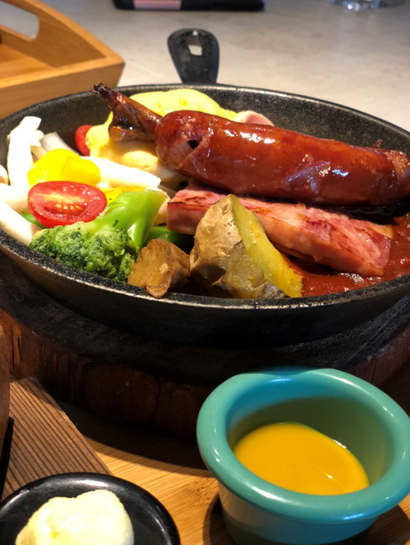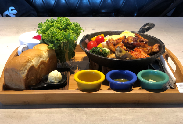 朋友1號所點之餐:韓式泡菜豬五花鐵板拼盤附mini吐司$270