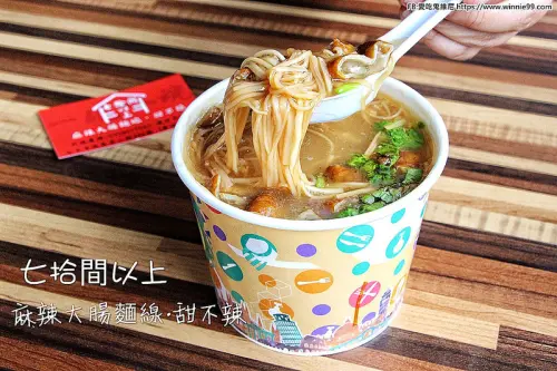 在台中南區高工路小有名氣的人氣小吃【七拾間以上 麻辣大腸麵線甜不辣】現在在忠孝夜市也吃的到了!