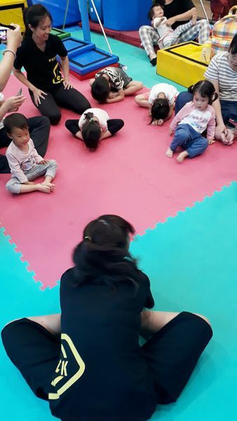 體操課程結束前,大家準備收操,蝴蝶飛飛飛,我沒有趴到睡著,我是很認真在運動收操喔!教練利用活潑的授課方式,讓小孩覺得是玩樂而不是運動,小朋友都不想下課了。