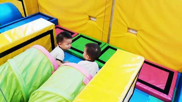 自己下場運動啦!爬過山洞,開心的看著鏡子裡的自己