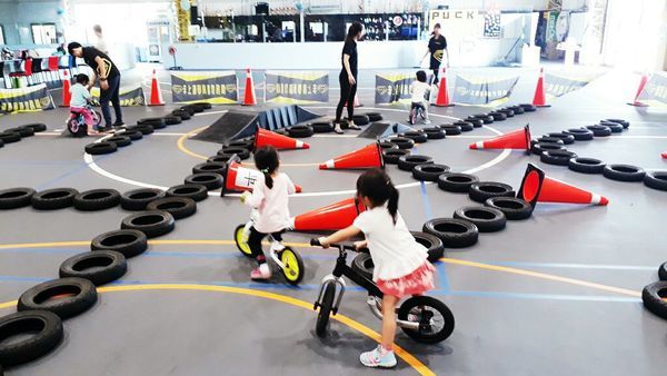 二寶也加入滑步車初體驗,園區提供的滑步車小朋友身高需要86公分,不然大人需全程協助