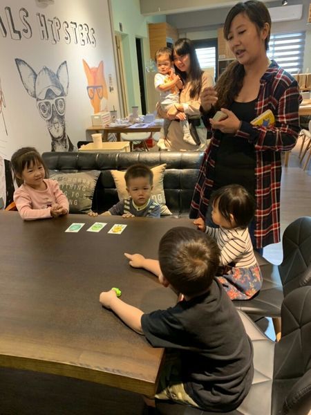 小孩搞定後,換媽媽們也來學學桌遊,大家都很認真聽老闆娘解說如何玩每款遊戲。人多時派對遊戲可以讓多人參與遊戲,讓大家都有參與感,從遊戲中增進彼此感情,激盪許多趣味。