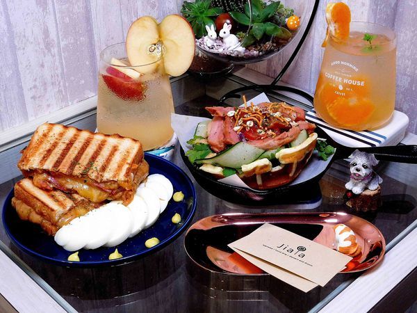 Jiala coffee剛開不久 ,但餐食滿有特色的 ,門口還有販售百貨專櫃超人氣甜點"千千虎掌燒"