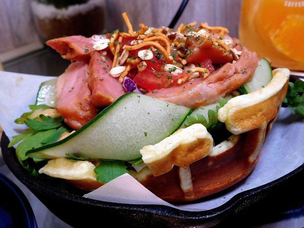 這個鬆餅是Jiala coffee 的創意餐食 ,幾乎沒有在其他地方吃過同樣的~