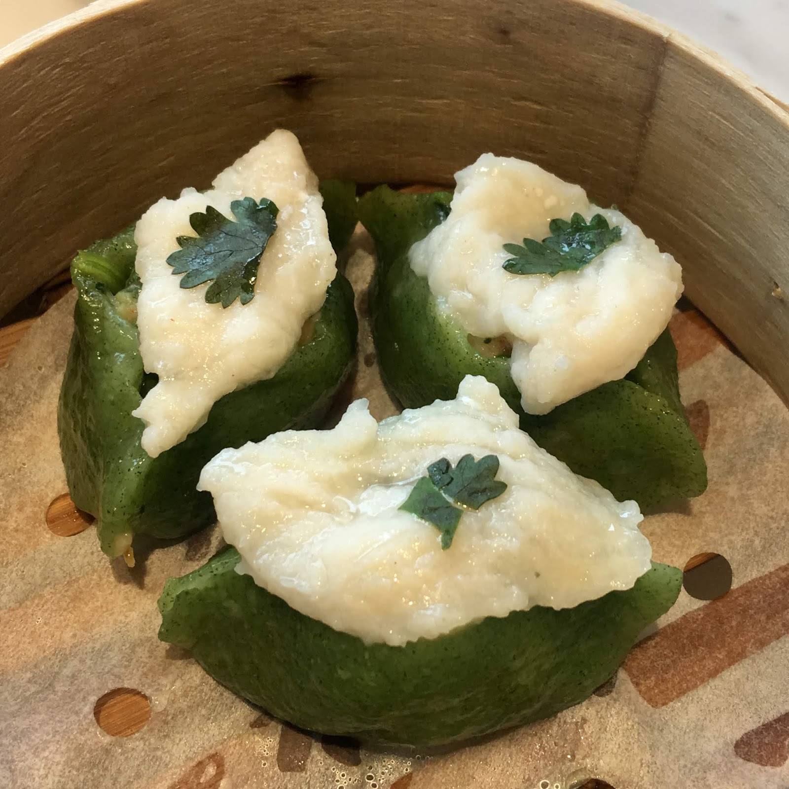 ■ 鮮魚菠菜餃- IR愛吃菠菜,除了外皮感覺是用菠菜做的,因為看起來綠色的,在白色魚漿下方,也能吃得到菠菜,吃起來很柔軟味道也很有層次。非常喜歡這細緻的菠菜餃。