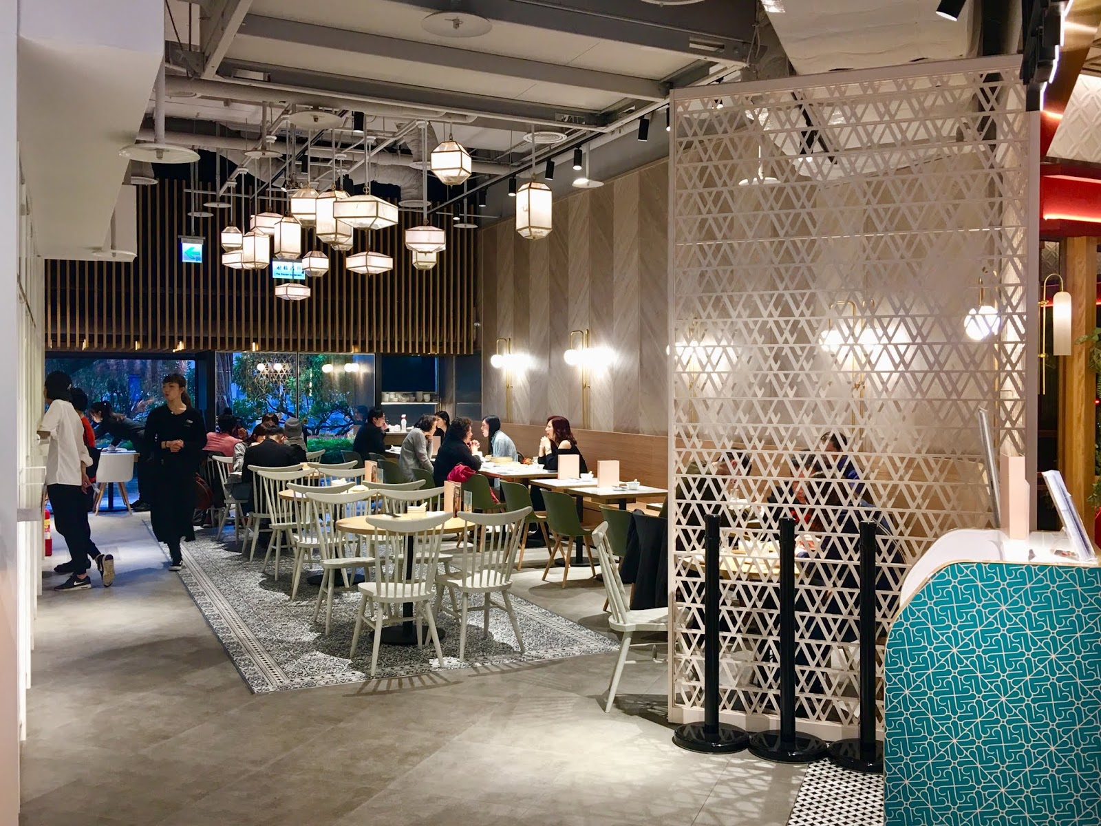 現代風格的餐廳,靠窗的位子,還能看見微風南山的空中小花園,吃飯也能有些綠意。