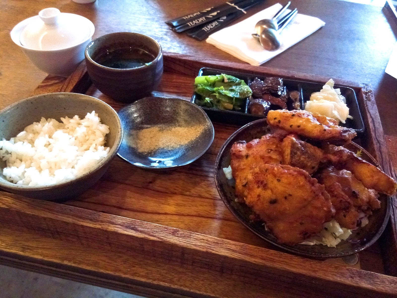 整體用餐下來,還好沒照用餐限制的時間趕人,不然我真的會翻桌,或許真的是店家人手不足吧,但服務這點真的有需要再改進。套餐缺點飯太少、菜太鹹,飯吃完還剩一堆菜,反而炸物類的東西調味剛好也很好吃。這裡還是喝茶聊天好,如果很餓千萬不要尖峰時段來,不然會餓死😣,就像我一樣邊聊天邊覺得餓只能看著別人的餐點流口水😅。建議大家離峰時段再來這裡喫茶聊天,比較不會掃興唷。