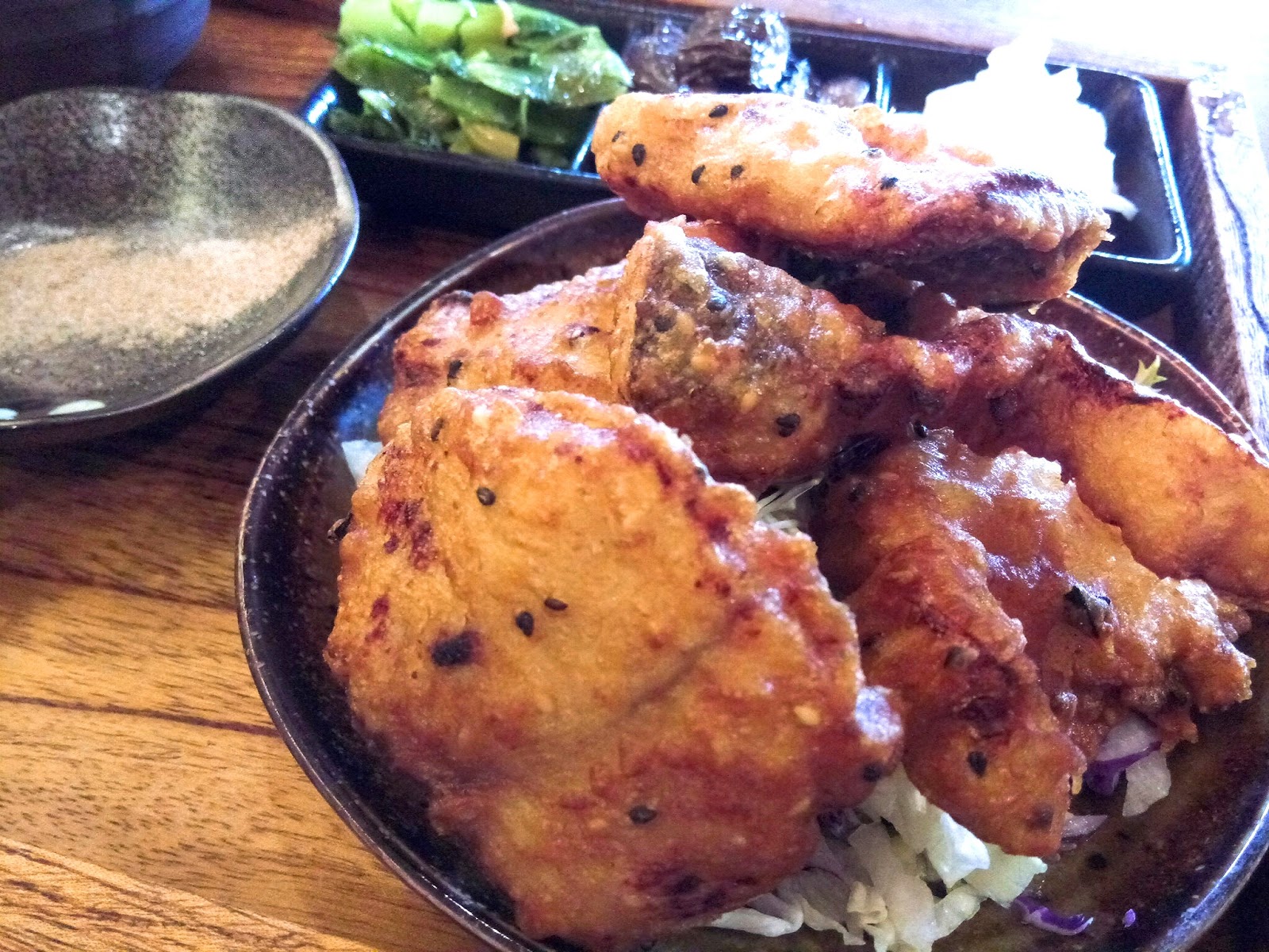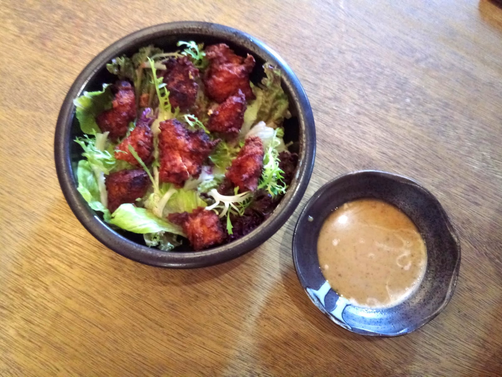 朋友點的鮮蔬嫩雞塊,炸的是有點黑,但口味上還不錯,尤其配上胡麻醬很搭。