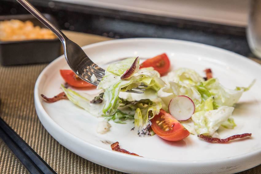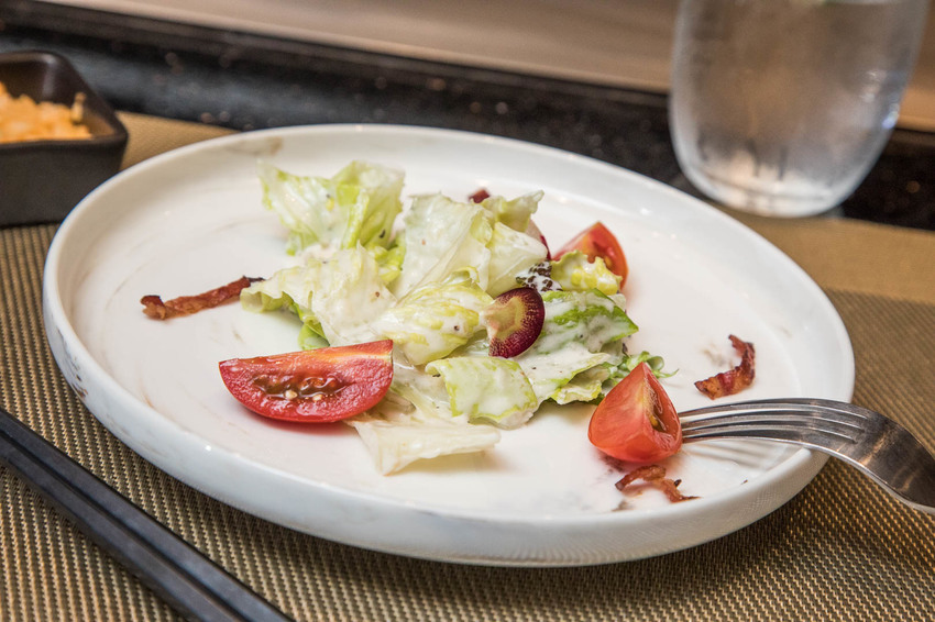 凱薩沙拉的醬料很有特色,帶有一點芥末的微嗆辣感,裡面還加了香煎培根增加鹹味深度及口感,看似簡單的沙拉口味相當細緻
