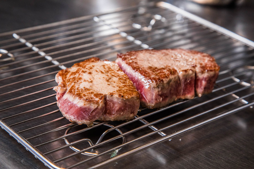 美國prime沙朗牛排表皮煎到酥脆後靜置,再回煎,靜置熟成後的牛排吃起來風味更加濃郁肉質也更鮮嫩
