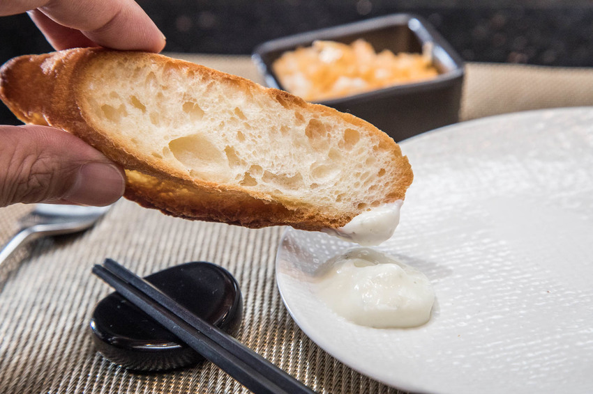 外酥內軟的法國麵包搭配主廚特製美乃滋,麵包略帶鹹味及麵香,紮實的麵包口感令人印象深刻