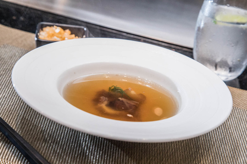 精燉的牛尾清湯,以法式澄清湯的作法,牛尾軟嫩香濃還有豐富的膠質,清湯喝起來濃郁清甜