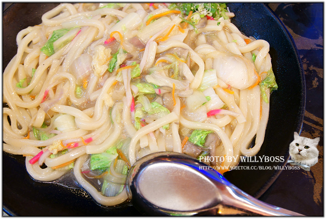 炒讚岐烏龍麵90元,份量挺大,90元頗滑算的,烏龍麵煮的較軟一些,口味則是有些台,吃的到白菜的鮮甜:P。