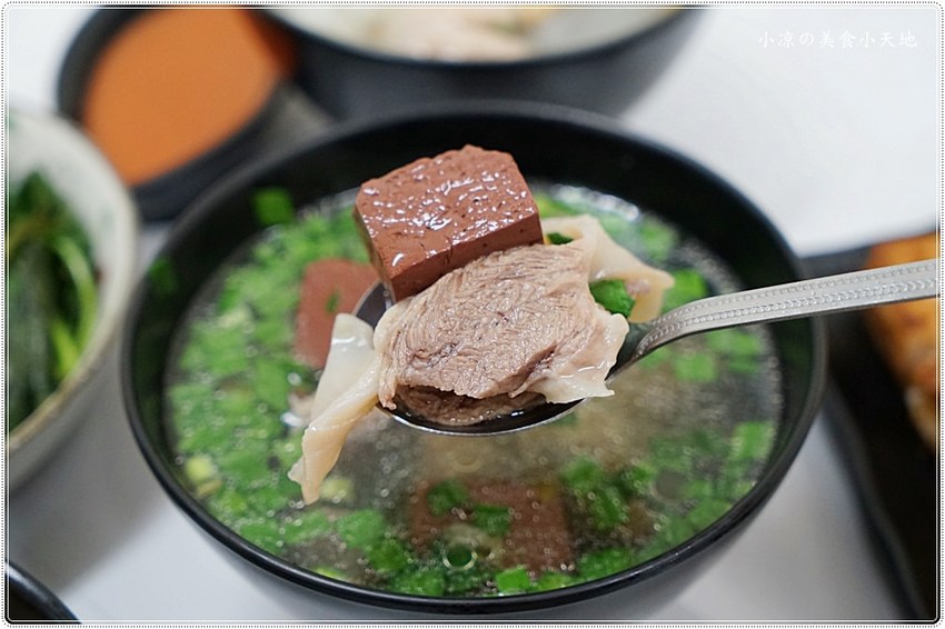 小凉點的是隔間肉豬血湯(清湯),上桌前會撒上韭菜末增添香氣~~