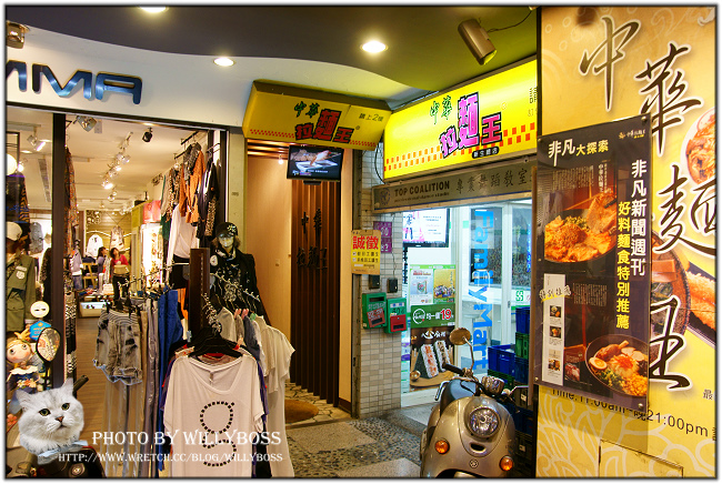 中華拉麵王位於新生路上,店是在二樓,要從服飾店旁的樓梯上去。
