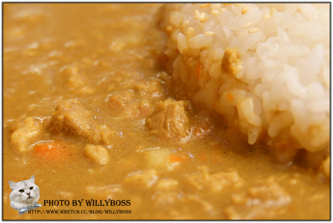 咖哩味道沒有很濃卻也不會太淡,以這個價錢來說還能接受,裡面吃的到碎肉算特色吧XD!