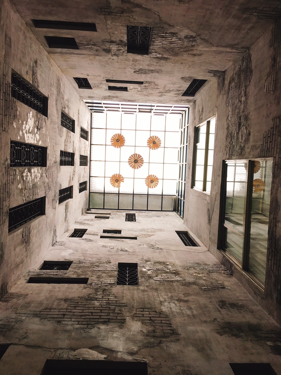 仰頭看就是四面老舊的牆面,