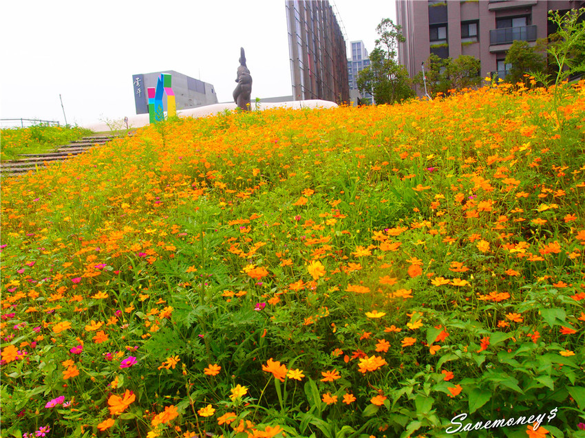 近拍的波斯菊也是美美的,黃色,橘色,紫色各自爭奇鬥艷