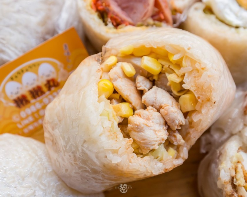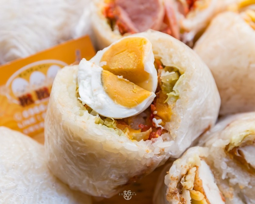 ↳傳統口味的飯糰,裡面餡料有酸菜、高麗菜、紅豆枝與肉鬆,包有一整顆的鹹鴨蛋。