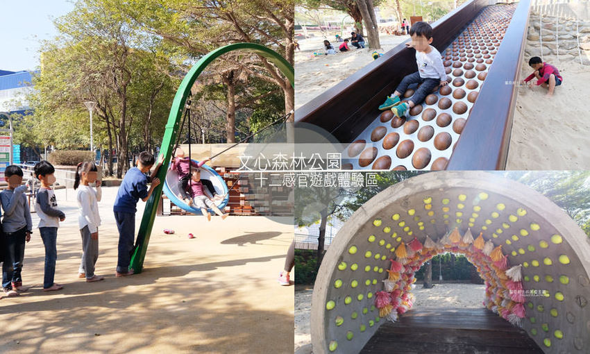 台中南屯│文心森林公園-十二感官遊戲體驗區,溜滑梯、盤型鞦韆、涵管通道,還有大大的沙坑