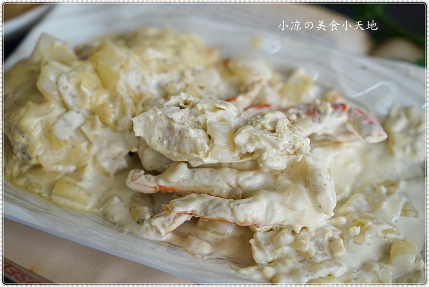 以奶醬去搭洋蔥丁再混入螃蟹身內,以為這樣會很膩嘴,卻讓人很驚訝的滋味