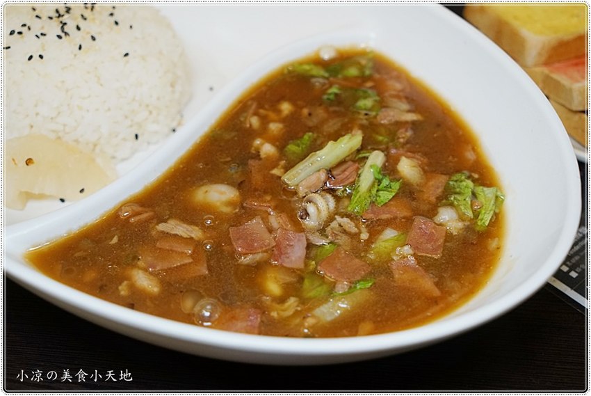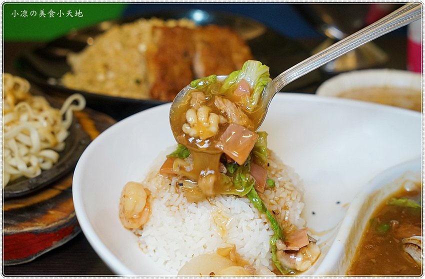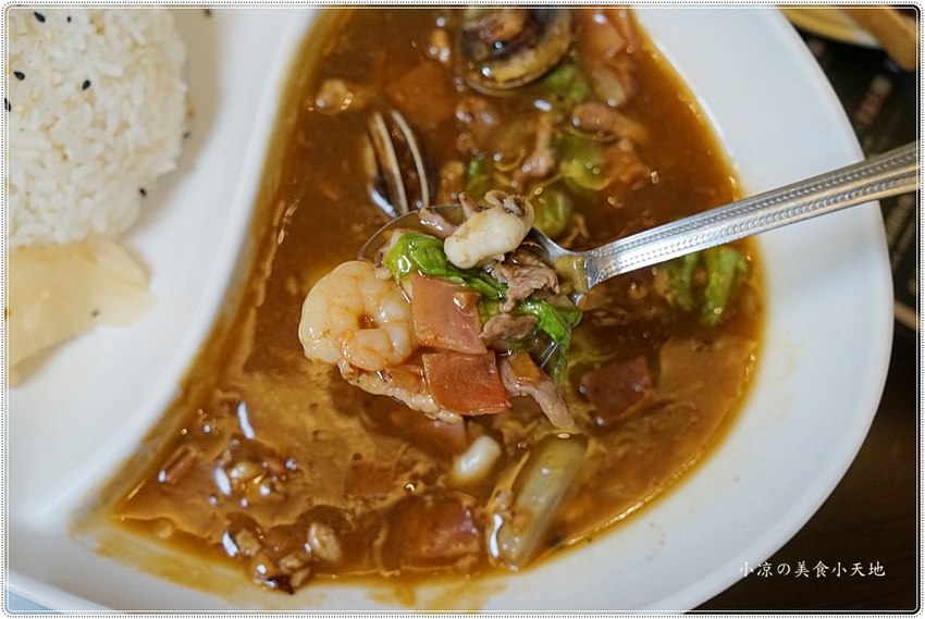 燴飯的勾芡勾的適中,醬汁巴在每一口米飯上,增添滑順跟飽足感