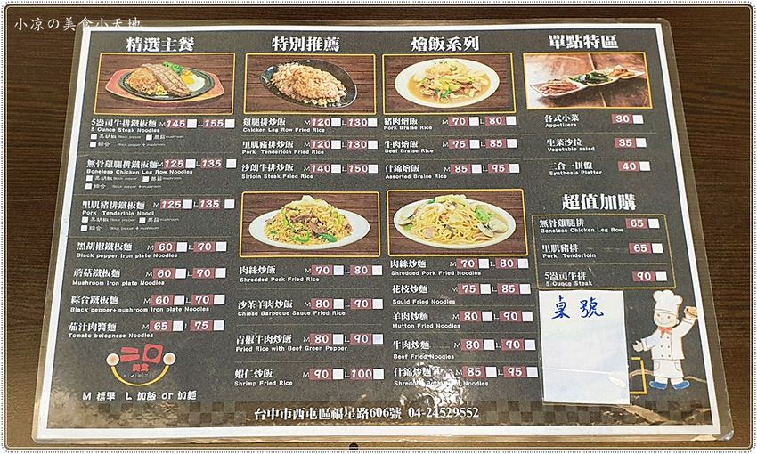 二口美食起源於一中商圈,提供平價鐵板牛排、炒飯、炒麵、燴飯以份量足、美味深受在地學子喜愛