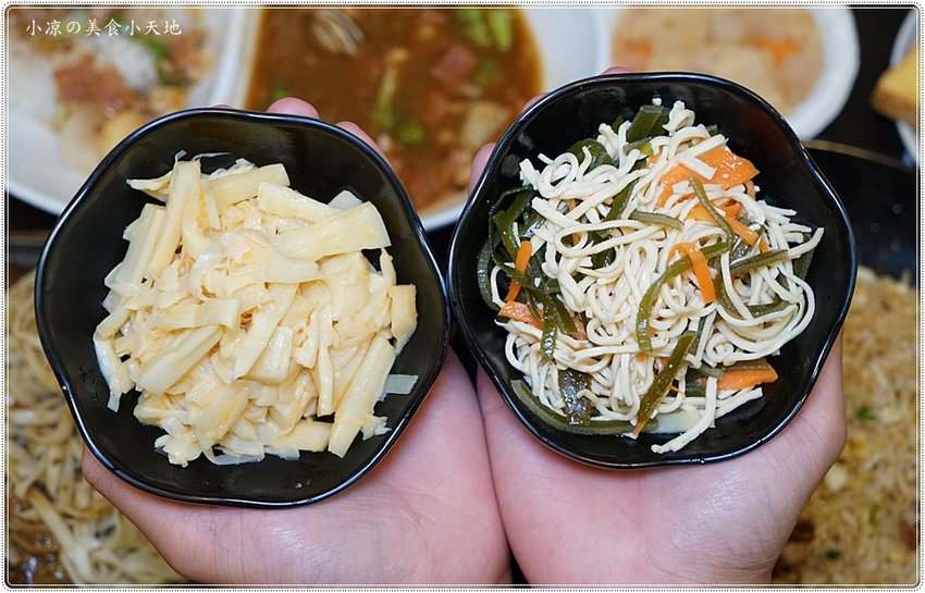 右、涼拌干絲、軟嫩的干絲搭上鮮脆的海帶絲、紅蘿蔔口感相當的豐富呢