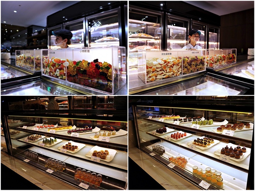 甜點櫃,除了有各種精緻蛋糕外,還有各種果凍和軟糖~