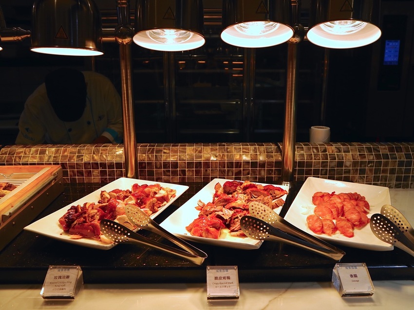 ▼《城食百匯自助餐》的用餐區動線滿特別的,餐點區多為一直線平台擺放,另有中央區。整體來說,餐點種類滿豐富的,不算少呢!!!