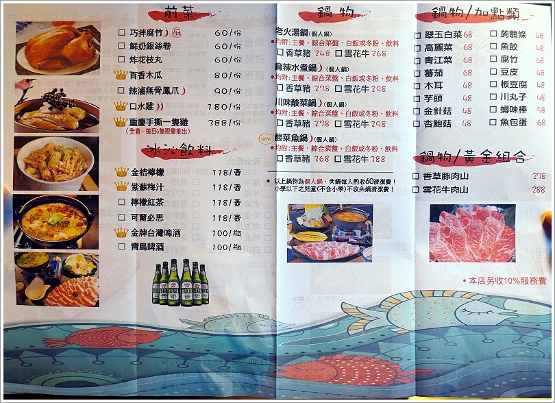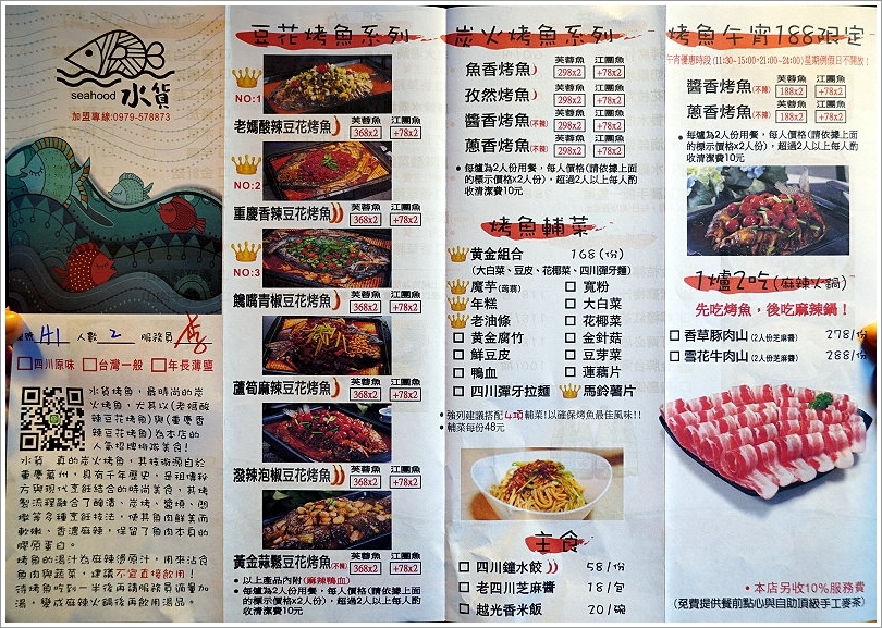 ▼背面還有前菜、飲料、鍋物、加點、肉山等選擇,想要吃烤魚、烤魚火鍋、鍋物、川味麵食等通通沒問題,也有不少朋友選擇宵夜時段來享用更划算!