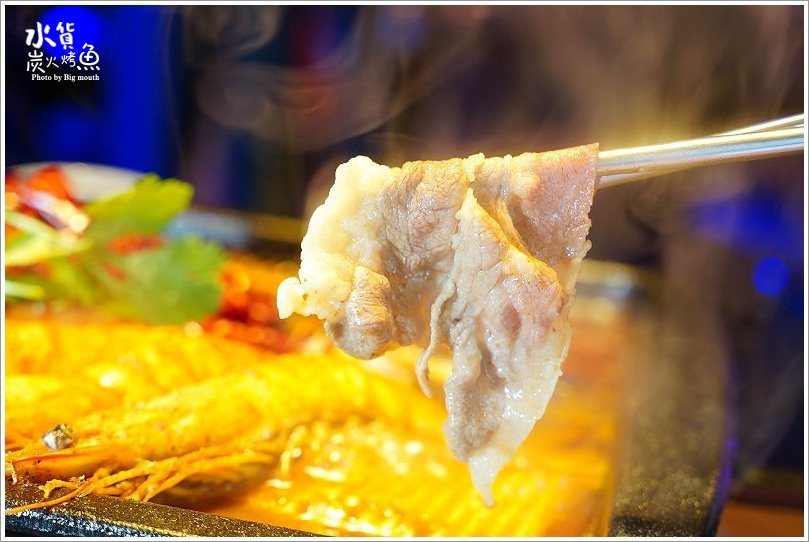 ▼吃完烤魚火鍋別以為就結束啦~還可以加點雪花牛肉山來個一爐二吃!他們的雪花牛油脂非常豐厚,帶點寶石鮮紅色澤,看起來就很可口;肉山雖說是兩人份但其實份量十足,如果是小鳥胃的話還可以吃到三個人也沒問題!
