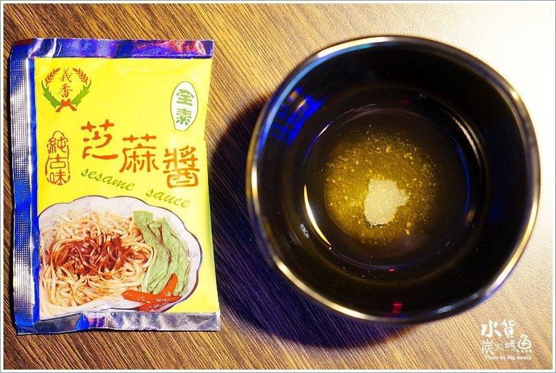 ▼隨肉會附上芝麻醬、香油等醬料,將芝麻醬倒入攪拌均勻即可搭配肉品享用!