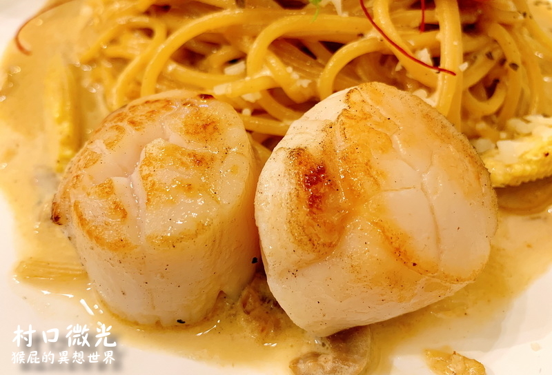 這道是用兩顆大干貝,搭配奶油明太子醬做成的義大利麵,醬汁比剛才奶油更加濃郁